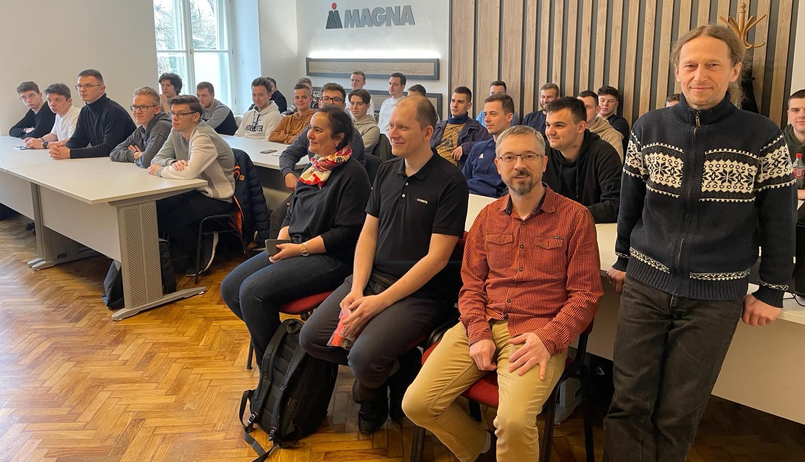 27. 11. 2025 mali študenti KTE, KEM a KTPE jedinečnú možnosť nahliadnuť do praxe priamo v závode MAGNA Electronics Slovakia v Kechneci. Videli, ako vznikajú špičkové elektronické riešenia pre autonómne vozidlá a elektromobilitu v podniku, ktorý patrí pod jedného z najväčších automotive dodávateľov na svete – spoločnosť Magna International. Ďakujeme za inšpiratívnu exkurziu a pohľad do technológií budúcnosti!