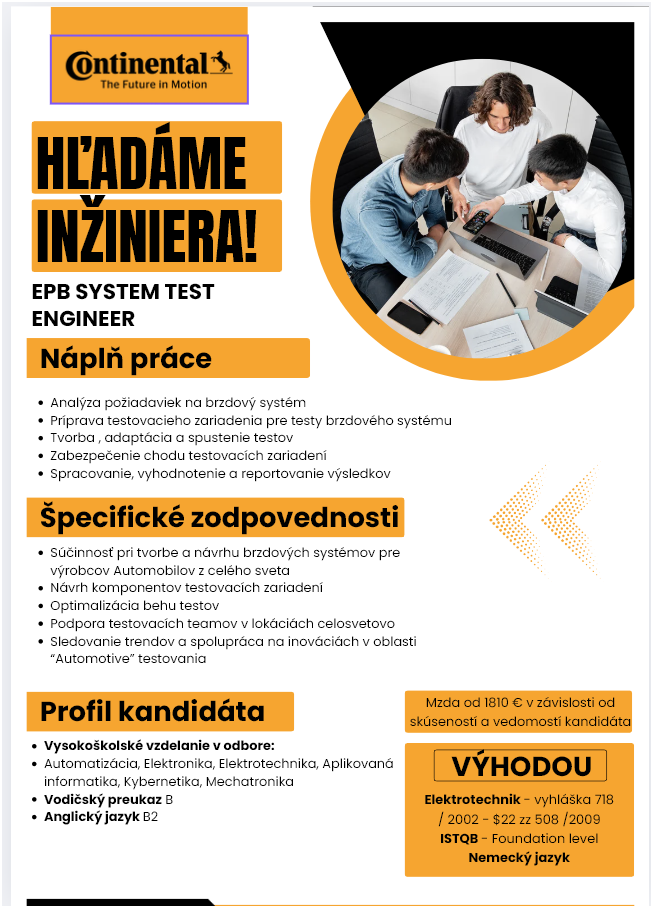 Pracovné pozície pre absolventov vo firme Continental Automotive Systems Slovakia s.r.o.: